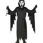 Costume spettrale ideale per Halloween e feste a tema horror. Composto da tunica nera lunga con cappuccio e cintura in tessuto abbinata. Maschera inclusa e altri accessori non sono inclusi.